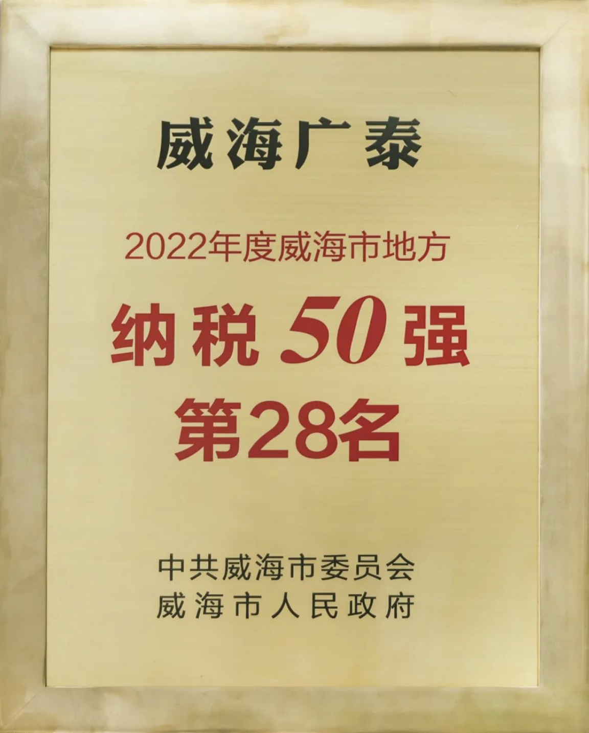 2023年1月28日,威海市2023年工作動員大會在威海國際會議中心舉行,發(fā)布《中共威海市委威海市人民政府關(guān)于表揚2022年度全市高質(zhì)量發(fā)展突出貢獻企業(yè)、單位和個人的決定》,表彰2022年度全市突破百億目標(biāo)企業(yè)、全市地方納稅50強企業(yè)以及招商引資先進典型。威海廣泰獲2022年度威海市地…