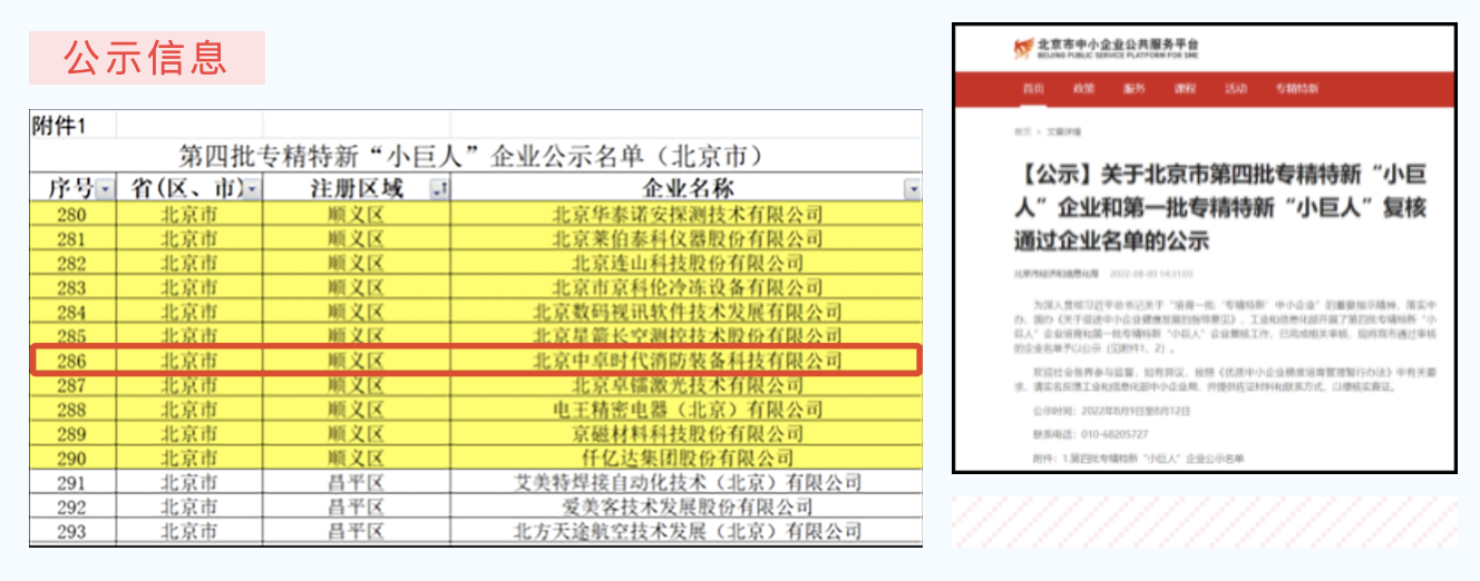 近期,北京市中小企業公共服務平臺公示“關于北京市第四批專精特新‘小巨人’企業名單”,北京中卓時代消防裝備科技有限公司(以下簡稱:中卓時代)成功入選第四批國家級專精特新“小巨人”企業。 專精特新中小企業具有專業化、精細化、特色化、新穎化等四大特征。專精特新“小巨人…