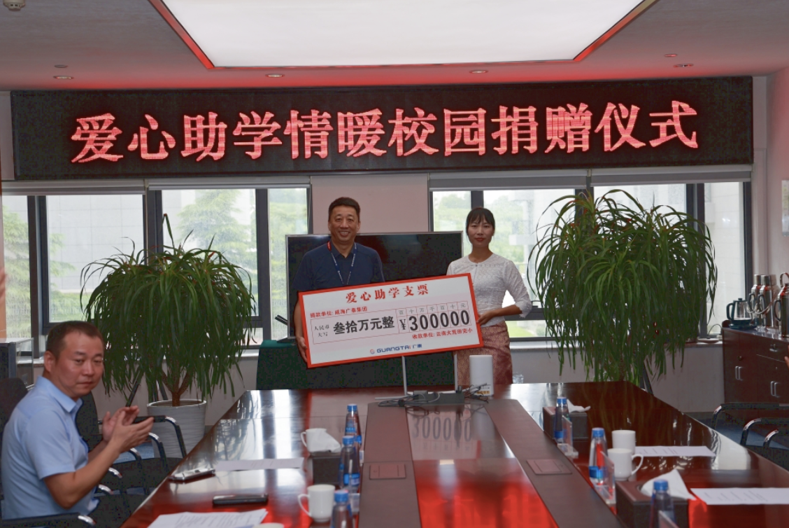 近日,云南大荒田駐村第一書記趙偉率云南大荒田完小校長李梅一行11人來訪威海廣泰,李文軒董事長一行熱情接待并在大廈三樓會議室進行了“愛心助學情暖校園”捐贈儀式。李文軒董事長代表廣泰公司向云南大荒田完小捐贈30萬元助學基金,并代表全體廣泰員工將6月1日捐贈的4000冊愛心圖書…