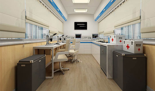 廣泰檢驗車是響應國家公共衛生號召充分滿足醫院在廠礦企業、城市周邊、偏遠鄉村等場合開展醫學檢驗工作而設計開發的。醫療車根據用戶需求可選配離心機、生化、血球儀、酶標儀等檢驗設備,能夠完成大部分常規檢驗工作。