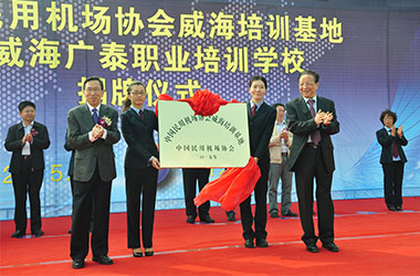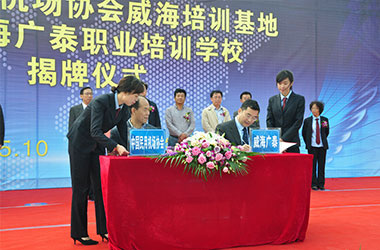2015年10月,威海廣泰與中國民用機(jī)場(chǎng)協(xié)會(huì)聯(lián)合在威海廣泰職業(yè)培訓(xùn)學(xué)校成立“中國民用機(jī)場(chǎng)協(xié)會(huì)威海培訓(xùn)基地”,整合優(yōu)勢(shì)資源,互利共贏,共同打造空港地面設(shè)備從業(yè)人員職業(yè)化培訓(xùn)平臺(tái),進(jìn)一步拓寬了師資渠道和培訓(xùn)力量,提高培訓(xùn)質(zhì)量和實(shí)效性,對(duì)推進(jìn)我國機(jī)場(chǎng)從業(yè)人員資質(zhì)能力培訓(xùn)的系統(tǒng)化、標(biāo)準(zhǔn)化,具有重要意義。